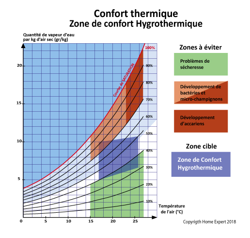 L’hygromètrie va jouer sur la zone de confort. Si on regarde le diagramme de Molier.