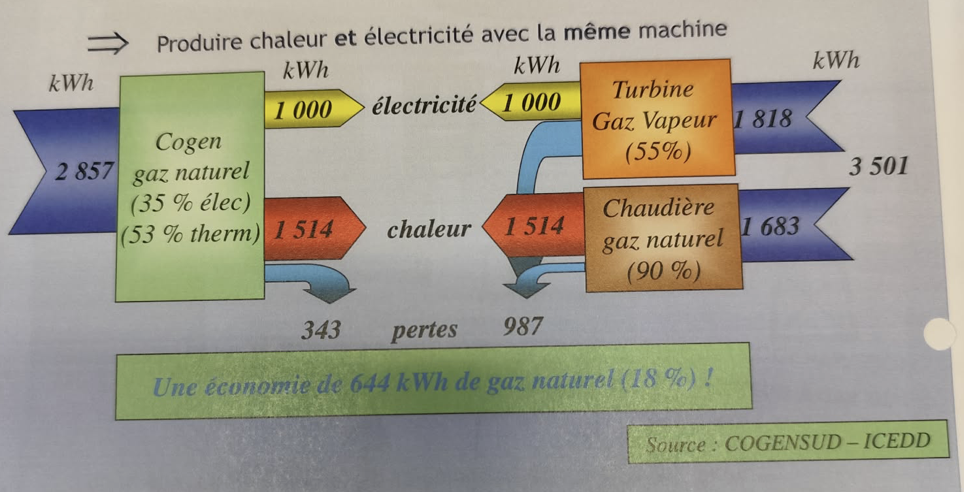 Il y a aussi des économies niveau financier. La cogénération permet, en gros, de produire de l’électricité au prix du gaz.