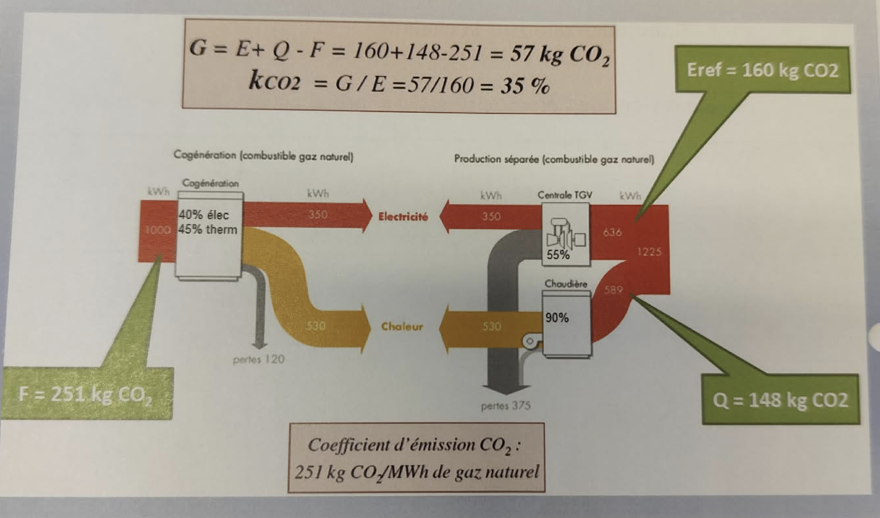 - les émissions de CO₂ de la cogénération (en tenant compte du combustible utilisé et du rendement global),