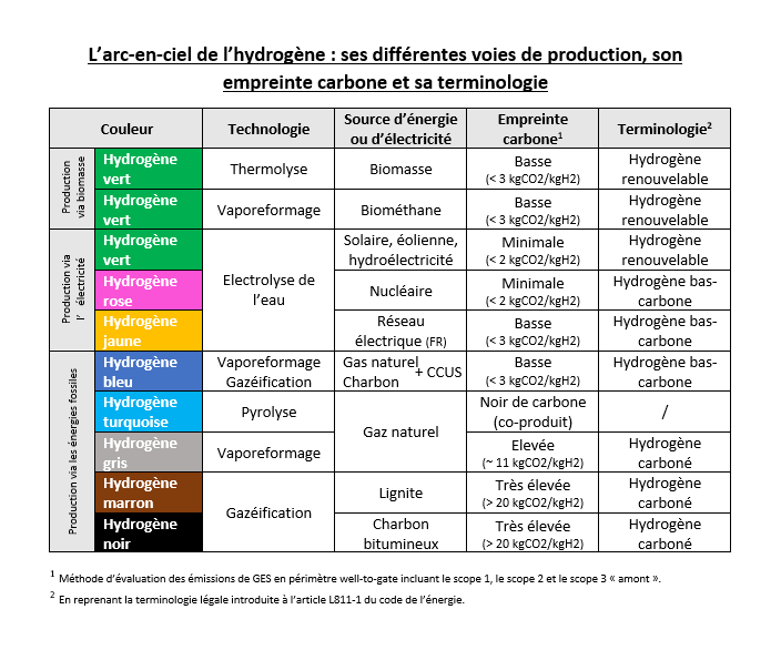 Le dihydrogène est classifié en fonction de couleurs liées aux modes de production. La majorité de dihydrogène produit n’est pas écologique, c’est le gris.