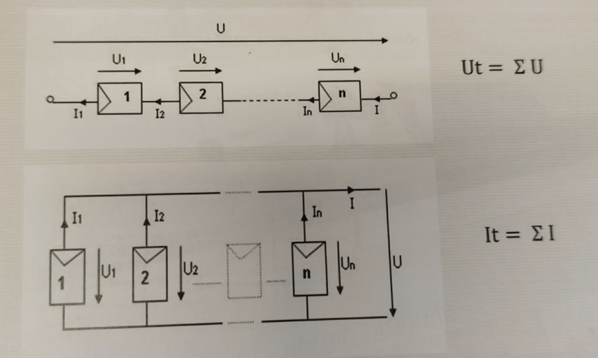 - Ce type de raccordement ne permet pas de travailler avec des strings de natures différentes sans altérer considérablement la production